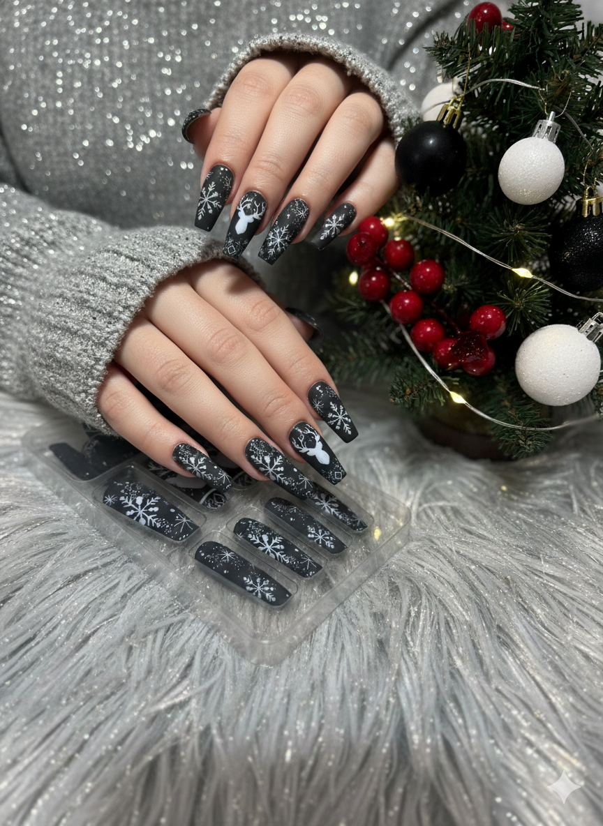 Feature highlights: HYSU’S 24-Piece Christmas Party Series Reusable Artificial Fingernails are made from lightweight ABS material. These scratch-resistant, snug-fitting nails are easy to apply and secure, perfect for Christmas-themed nail art in salons or at home. The set includes festive elements like REINDEER AND BLACK-WHITE NAILS, offering a fun and stylish way to celebrate the season.