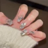Christmas press on nails snowflake love snowman manicure short almond bow long nail wholesale