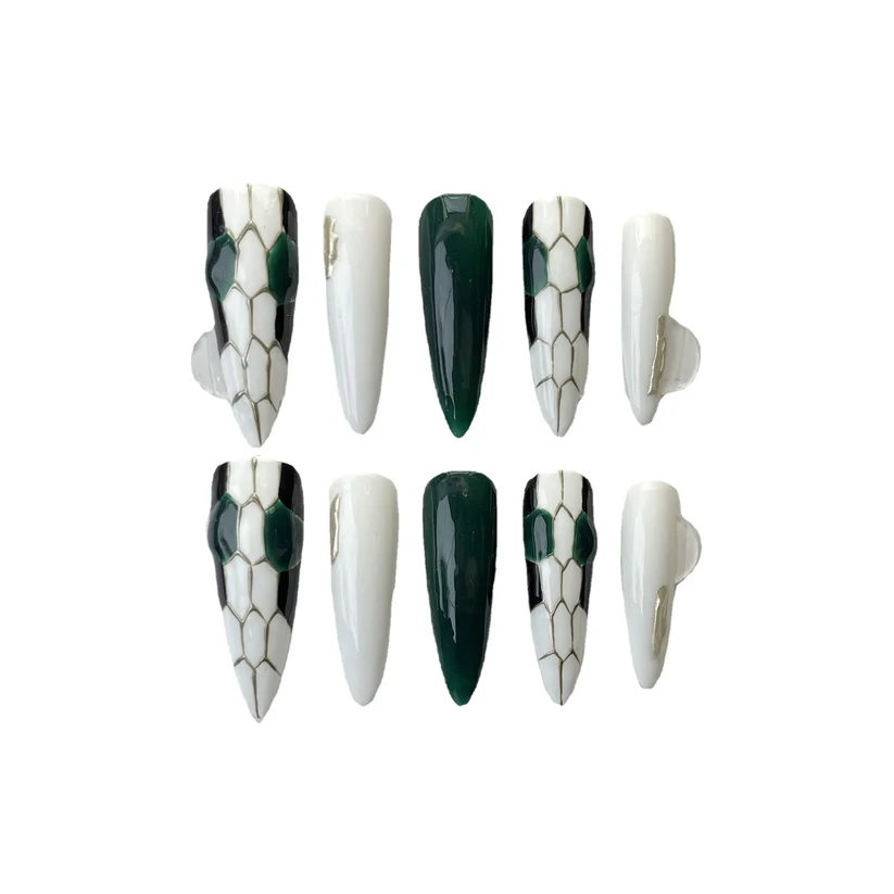 handmade real shot] New press-on nails snakehead nail art advanced light luxury super white nail art tall temperament