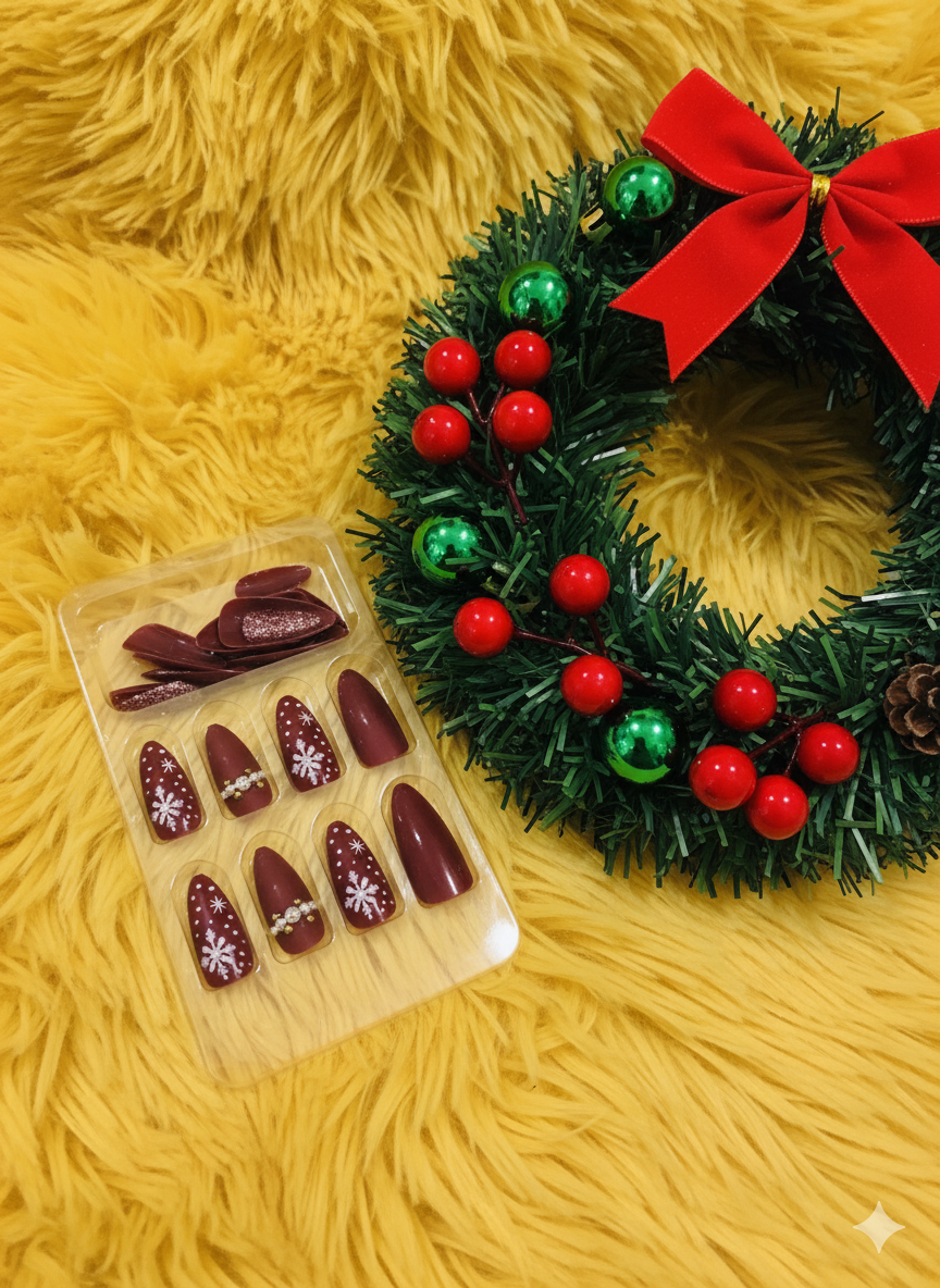 Feature highlights: HYSU’S 24-Piece Christmas Party Series Reusable Artificial Fingernails are made from lightweight ABS material. These scratch-resistant, snug-fitting nails are easy to apply and secure, perfect for Christmas-themed nail art in salons or at home. The set includes festive elements like RHINESTONES AND SNOWFLAKE, offering a fun and stylish way to celebrate the season.