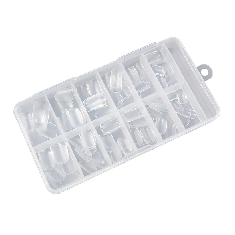 Nail Tips No-File Short Press-On Nails (Full Sizes) — Semi-Matte, Square & Round, Clear Case