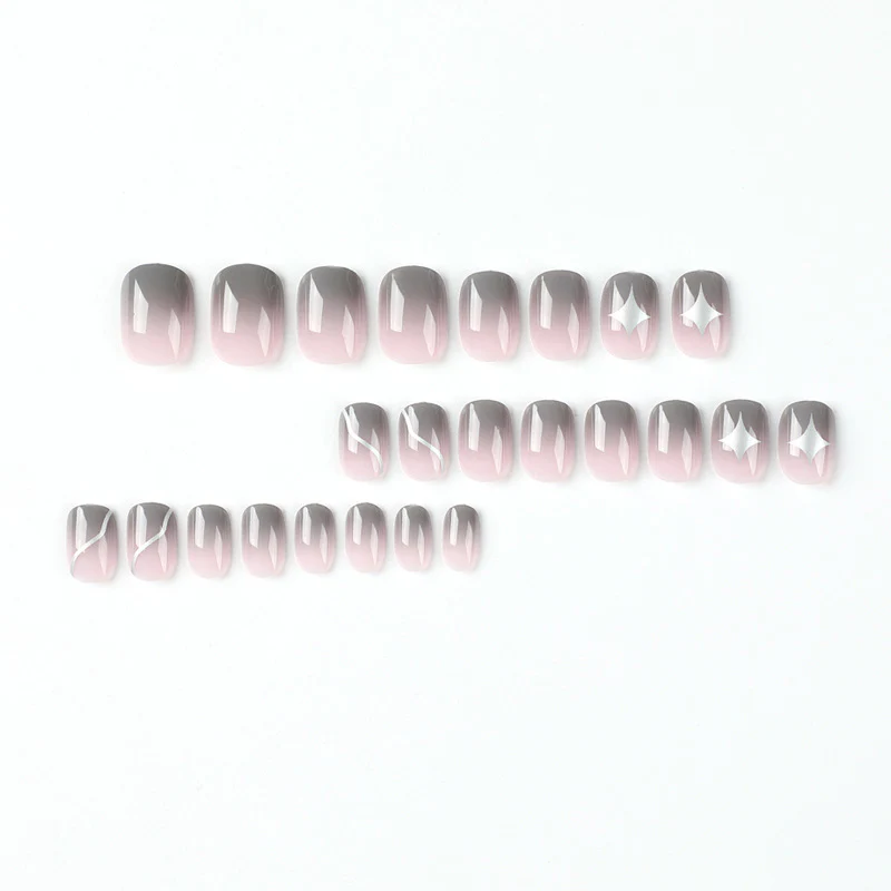 Ice Blue cat eye Translucent Carved Fingertip cat eye Nail Art Short Handmade
