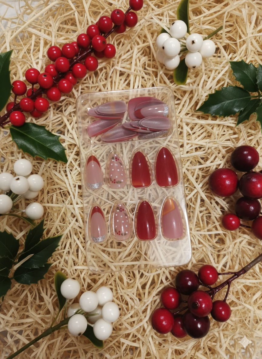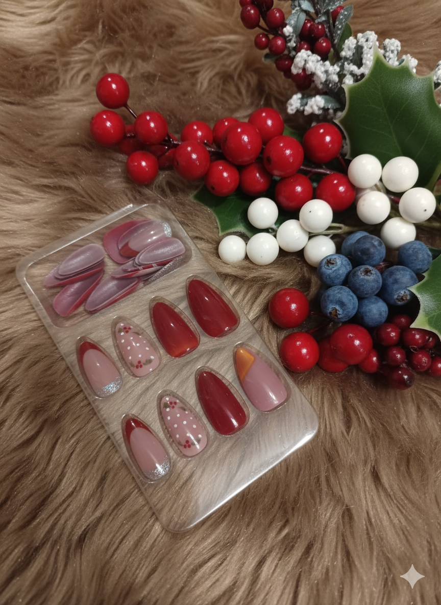 Feature highlights: HYSU’S 24-Piece Christmas Party Series Reusable Artificial Fingernails are made from lightweight ABS material. These scratch-resistant, snug-fitting nails are easy to apply and secure, perfect for Christmas-themed nail art in salons or at home. The set includes festive elements like BERRY N MISTLE TOE AND RED-PINK NAILS, offering a fun and stylish way to celebrate the season.